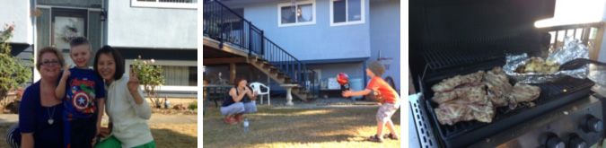 ステイ先は、バンクーバーの市街地から電車とバスで1時間程のサーレーという地区にあるお宅でした。 ホストマザーと5歳になる息子さんの2人家族で、私達の他に韓国人留学生が1人このお宅にホームステイしていました。 色々な国から学生を受け入れているそうで、とてもフレンドリーで明るいご家族でした。息子さんは人懐っこく、裏庭でボール遊びをしたり、日本からのお土産の玩具で一緒に遊び、 すぐ仲良くなりました。食事は肉類が多くボリューム満点、野菜もバランスよく作って下さり、どれも美味しかったです。食事後、テラスで夕日を眺めてのんびり過ごす時間がとても贅沢で、思い出に残っています。