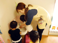 英語に親しめるように、絵本、手遊び、歌、ゲームなどの遊びをネイティブスタッフと一緒に英語で楽しみます。